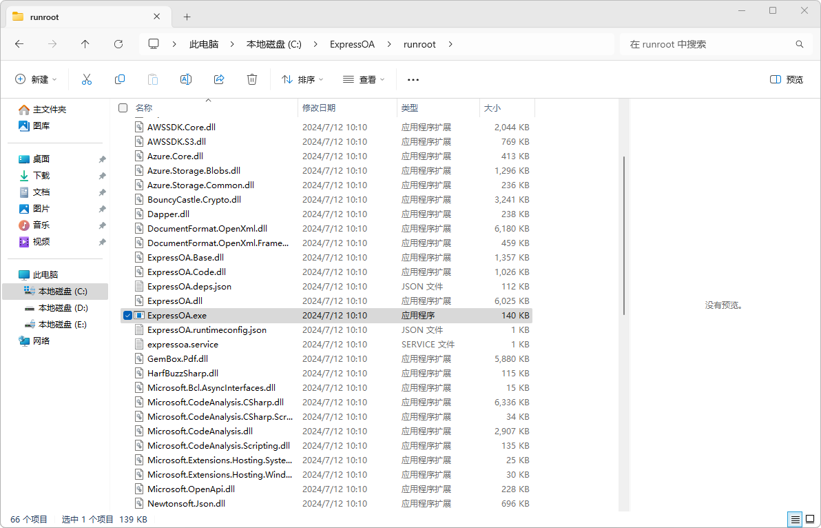 Windows 11, 10 作为桌面操作系统,不能用于生产模式(仅能用于开发者用途、评估测试)。(1)部署 ExpressOA 程序文件