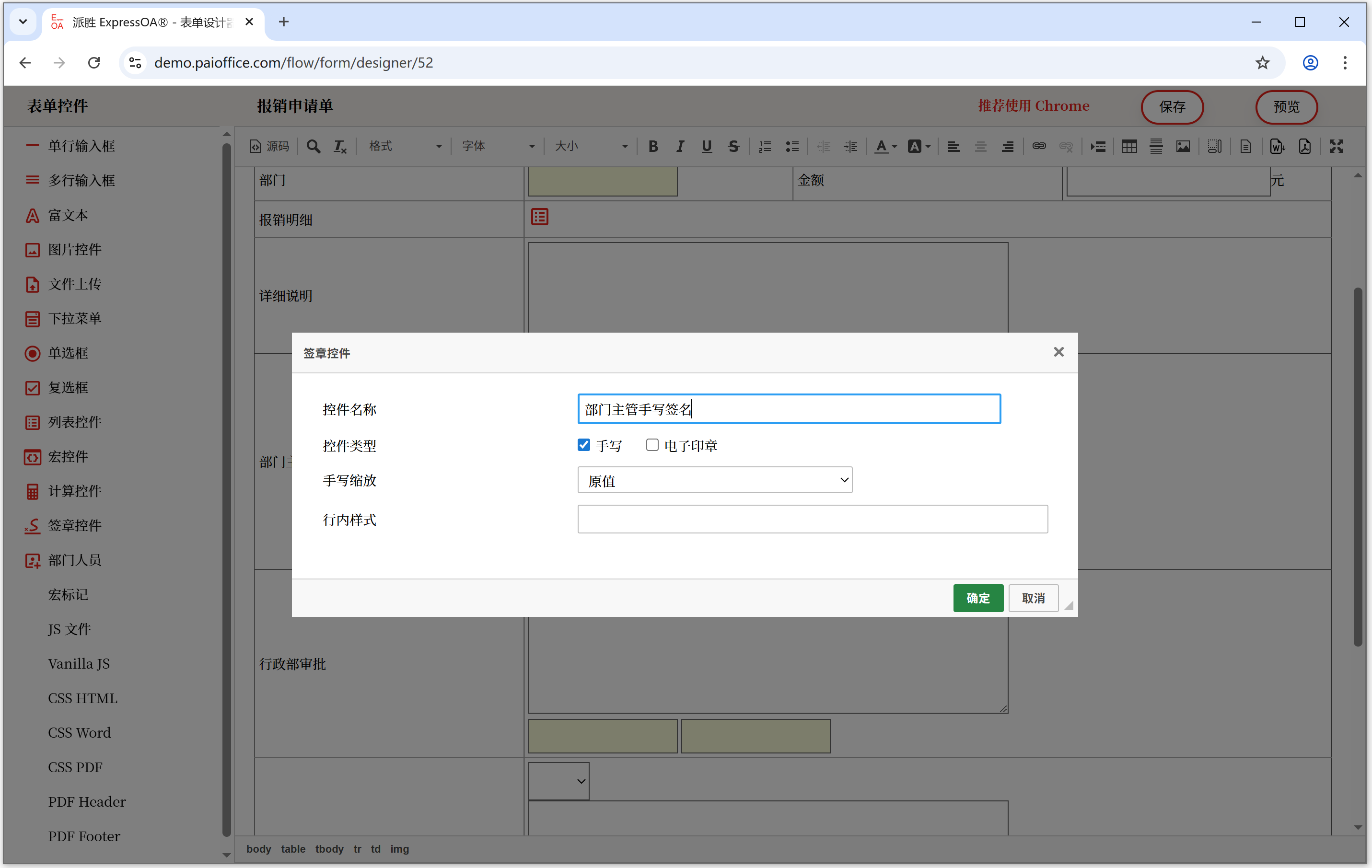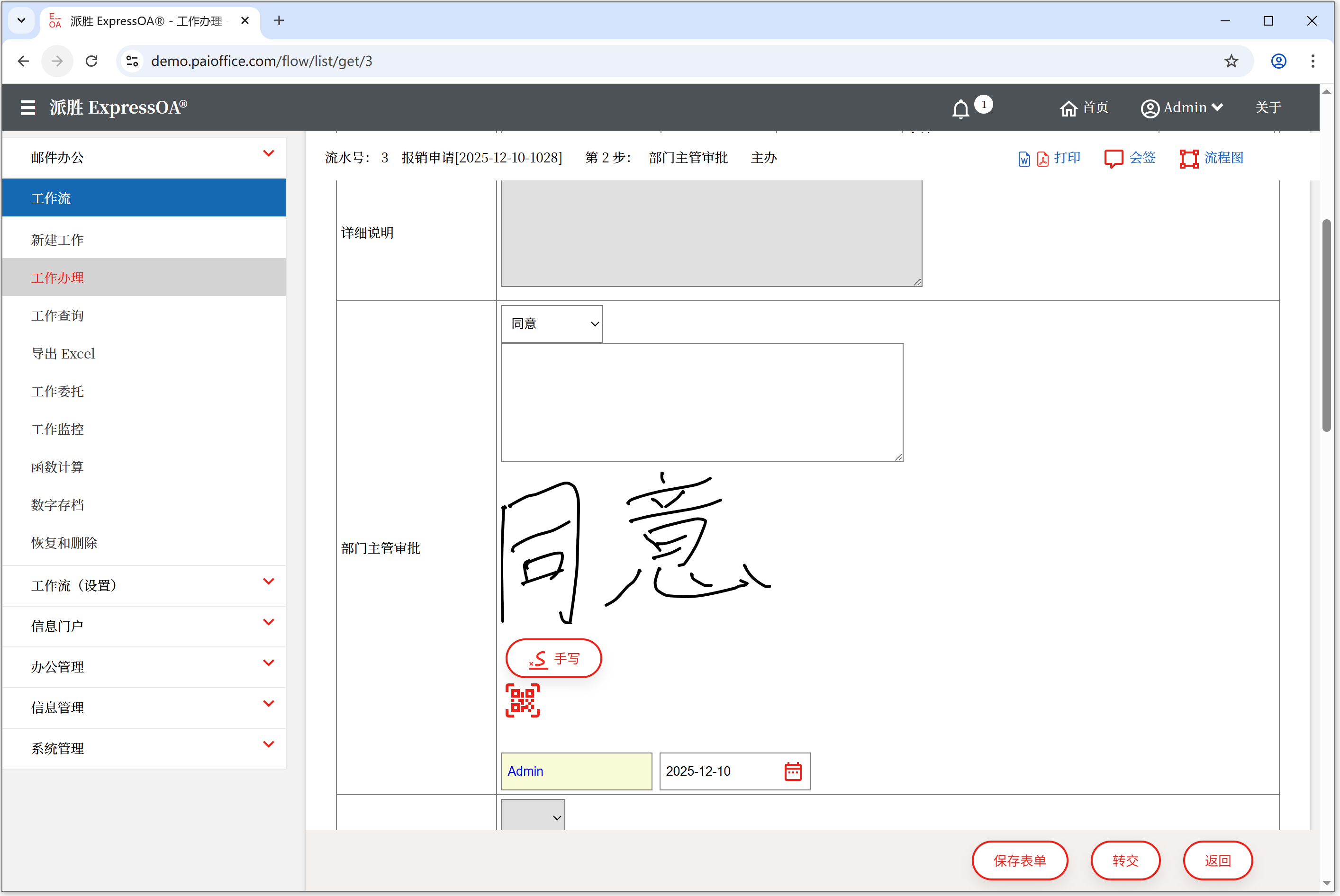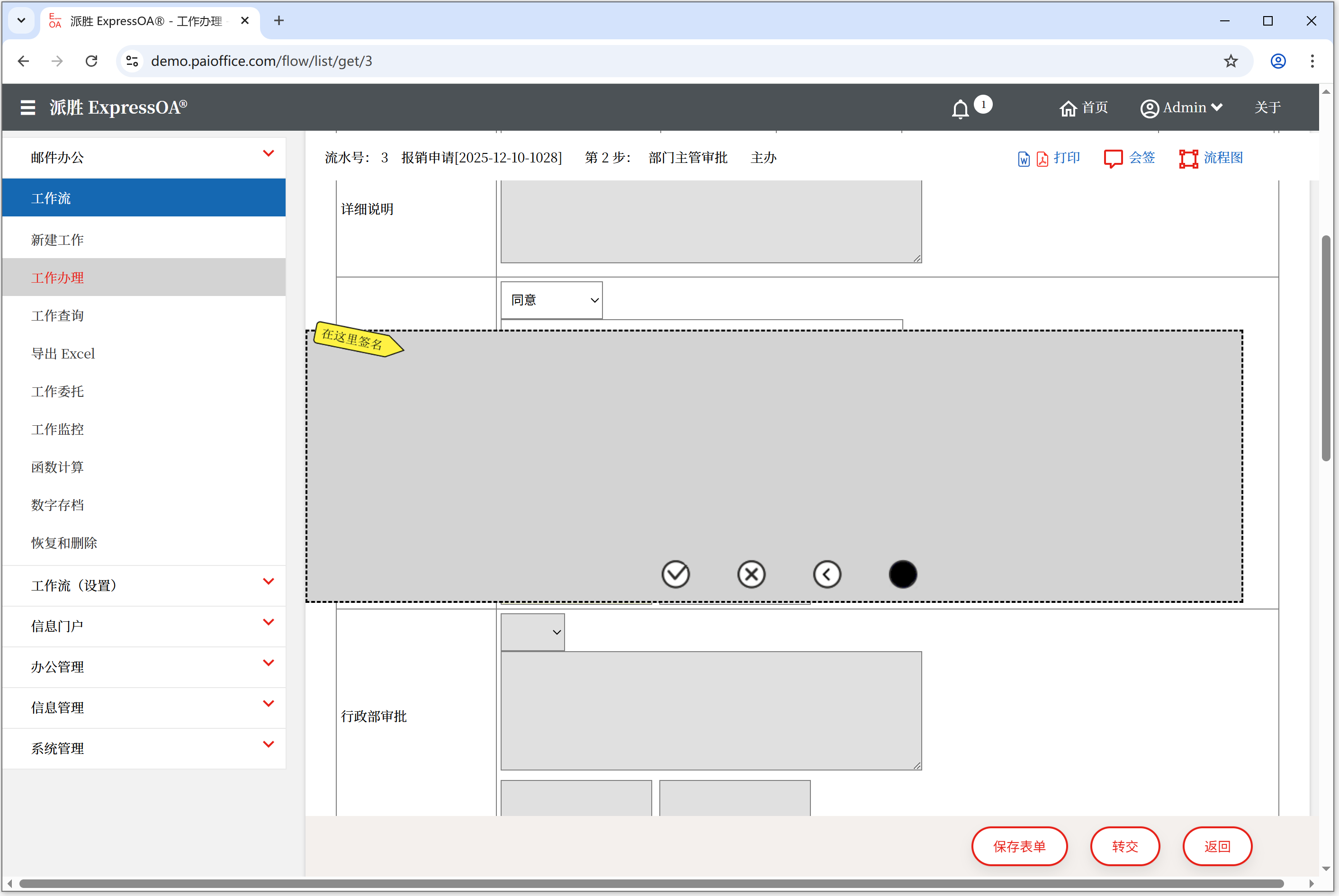 派胜OA - ExpressOA® 工作流 - 手写签名