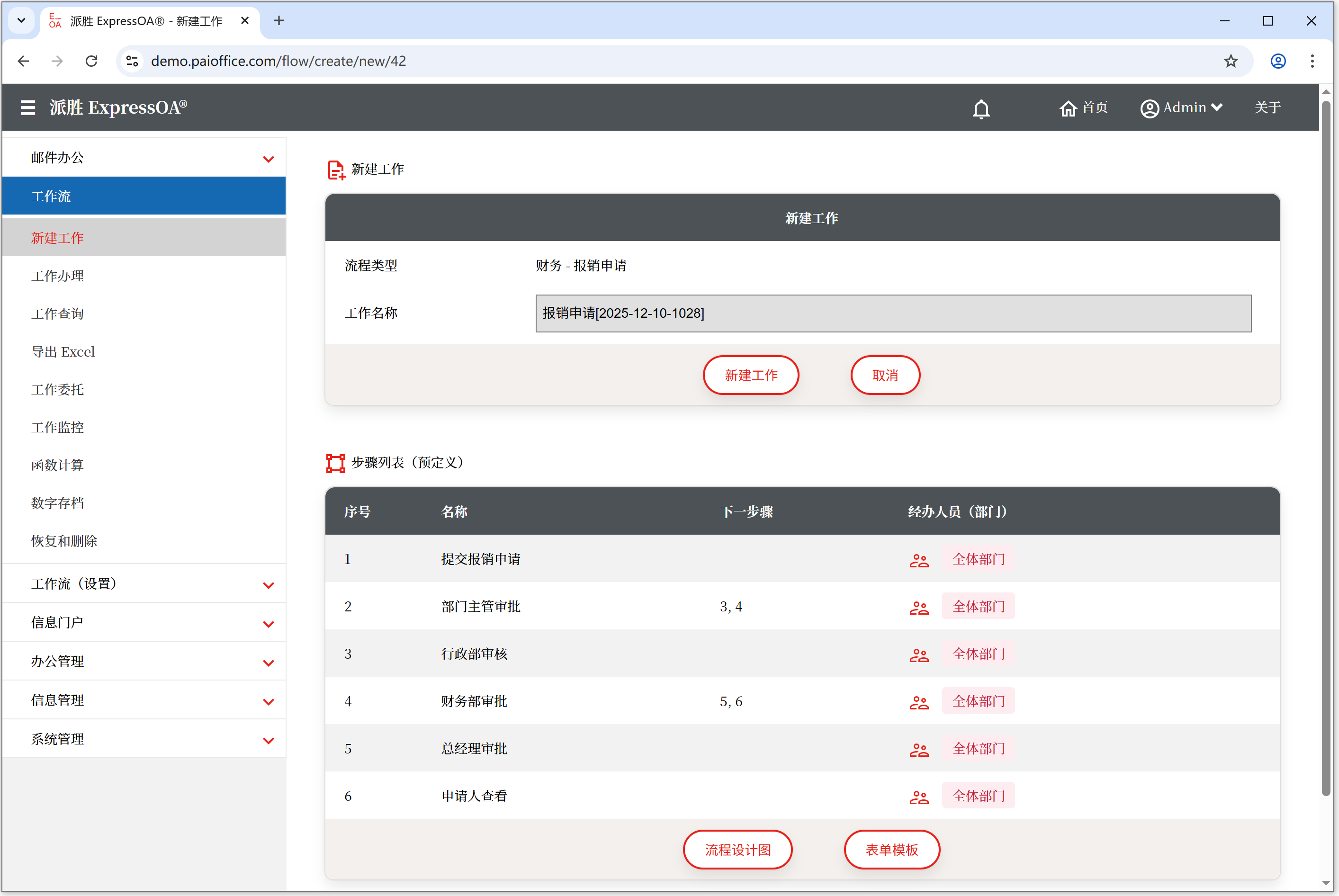 访问 <工作流> → <新建工作>,创建工作流程。