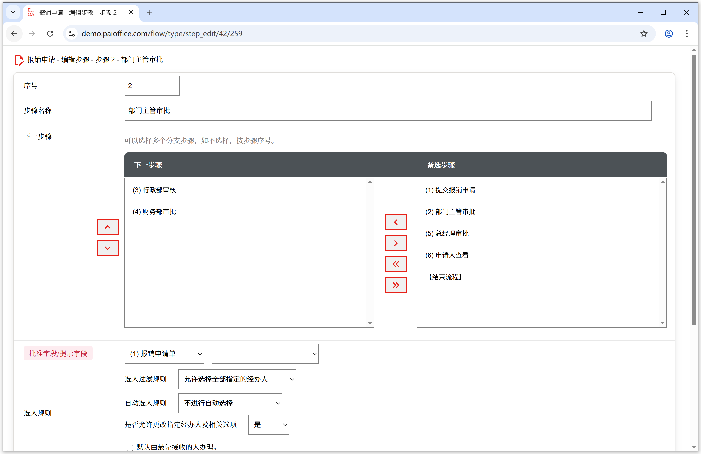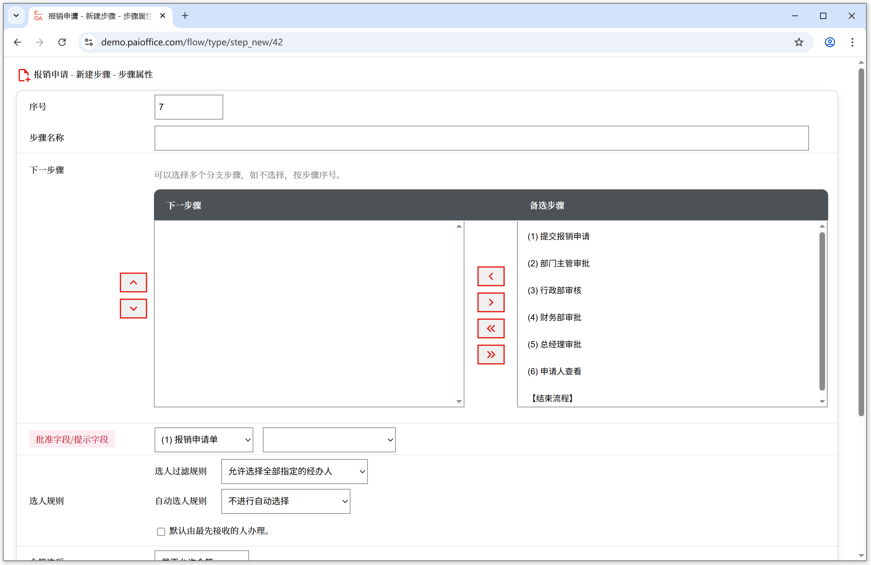 充分利用下一步骤的设置,用户就可以设计出复杂的业务流程,满足业务灵活多变的需要。