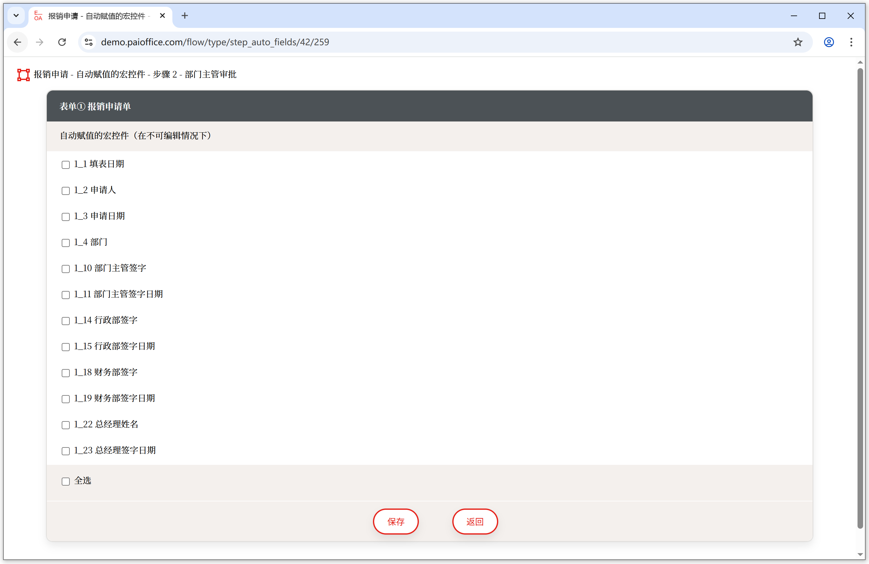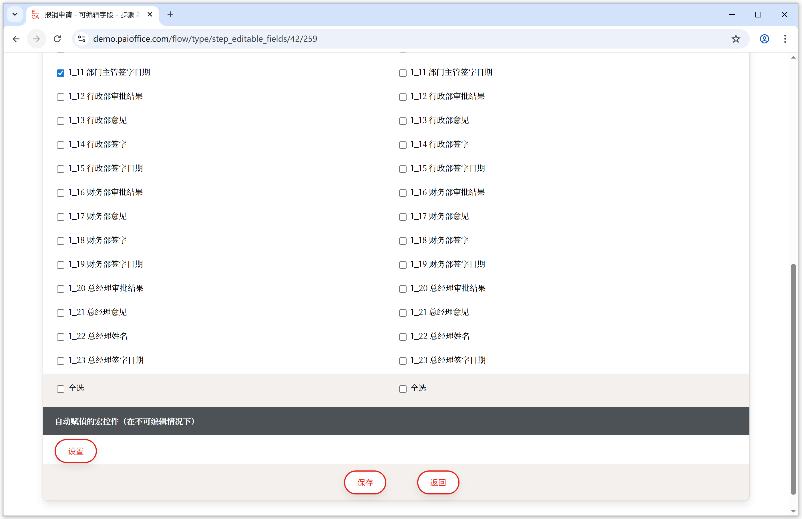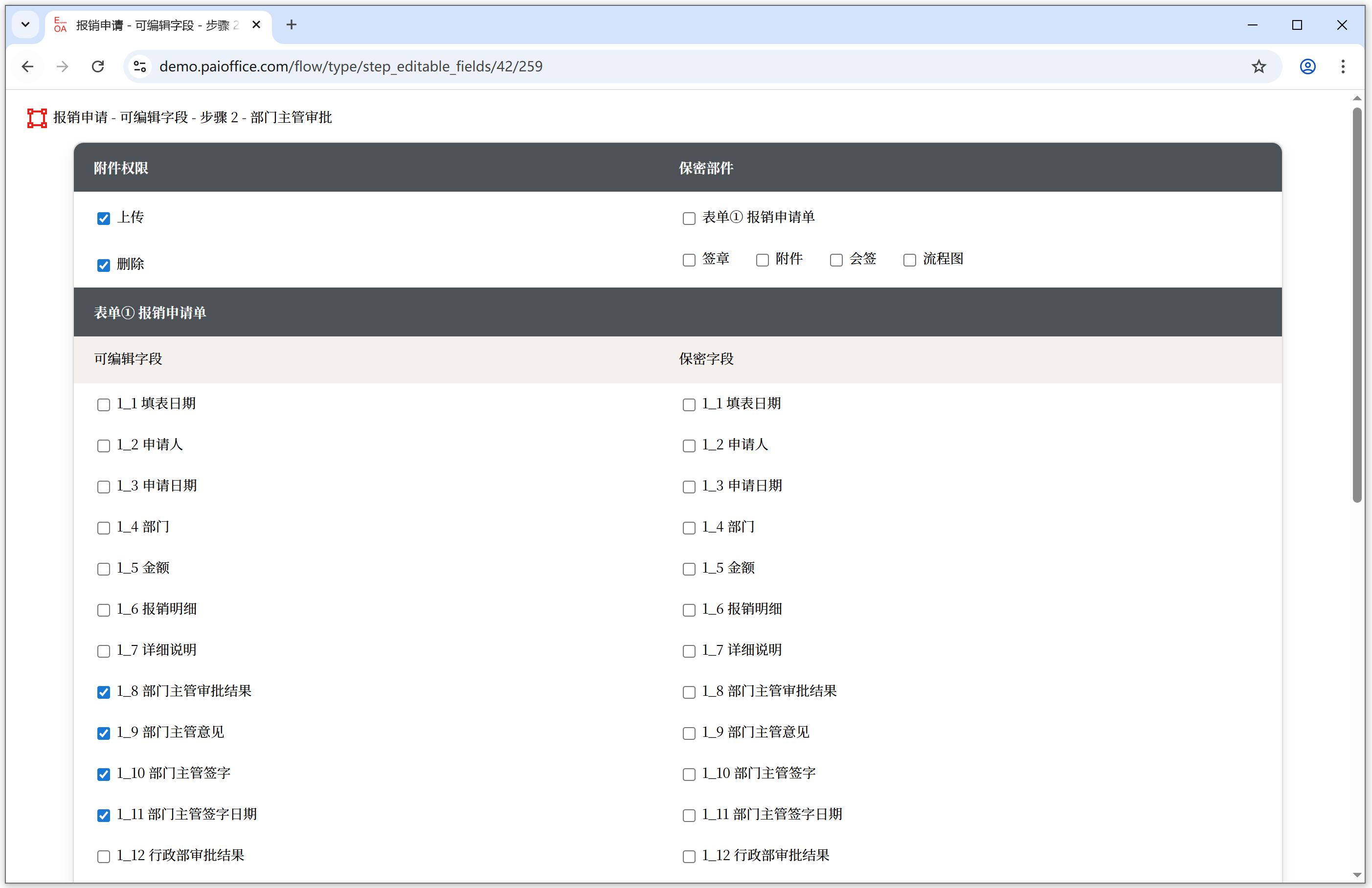 <可编辑字段> 在流程中控制每个步骤中表单的各个字段的输入权限,可编辑就是字段可输入、可修改。
